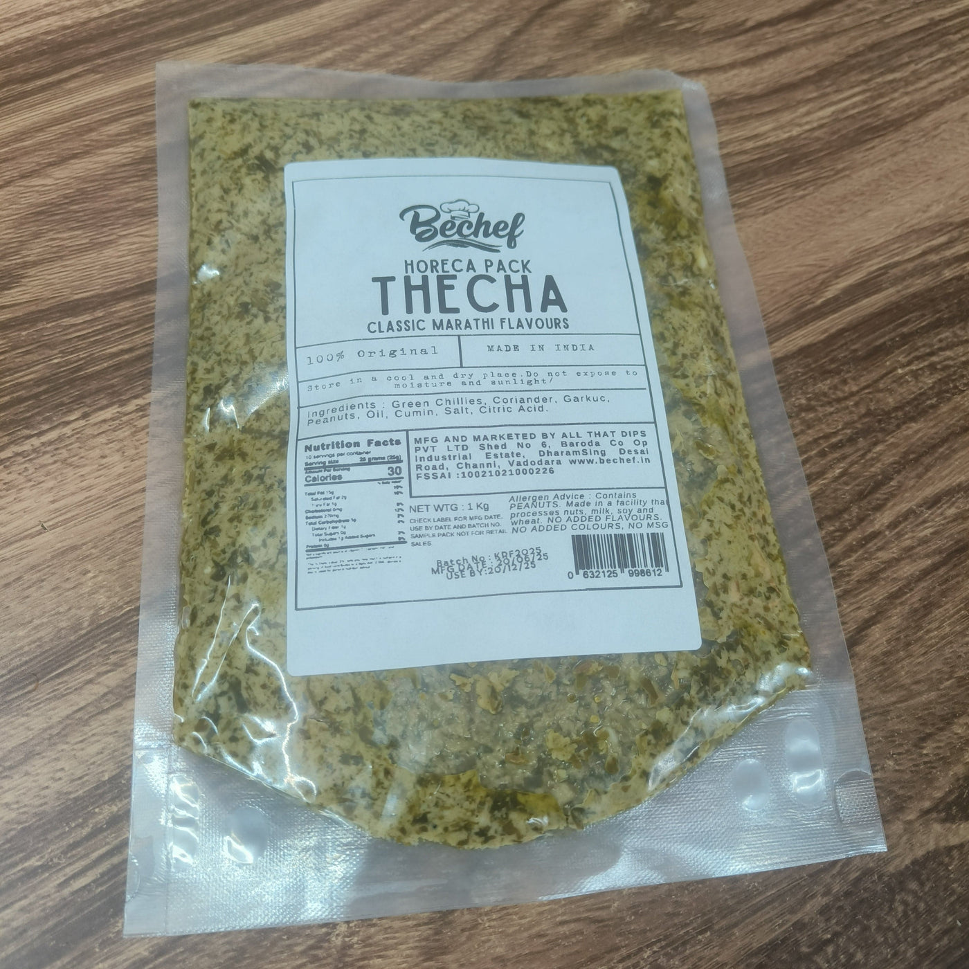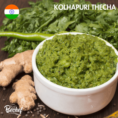 Bring the authentic flavors of Maharashtra to your plate with Bechef Kolhapuri Spicy Green Thecha. This traditional green chili chutney, packed with bold spice, garlic, and fresh coriander, is a versatile condiment that can transform any meal. Whether youâre enjoying it with bhakri, spreading it on bread, or spicing up your curry, this thecha adds a punch of heat and flavor thatâs uniquely Kolhapuri.